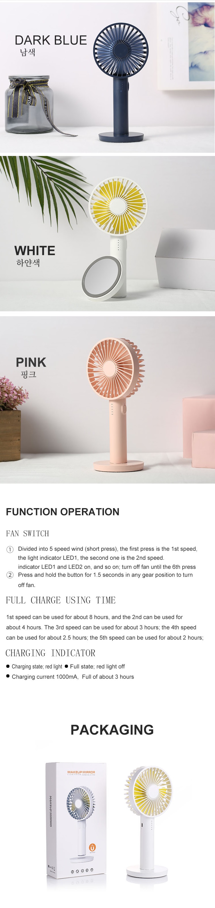 Product Name | rechargeable Handy Fan | Charging time | Approx 2.5 hour |